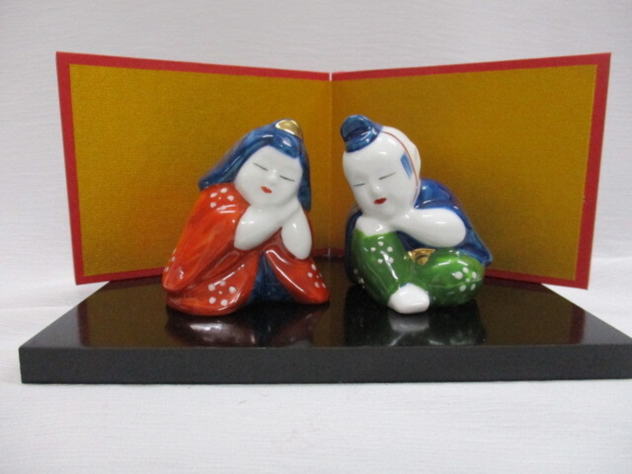 有田焼で作った、夫婦寄添うほのぼのとしたお雛様です。